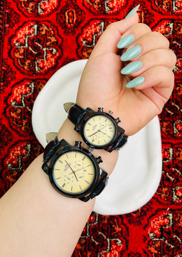 ساعت ست مردانه و زنانه بند چرم تاریخ دار